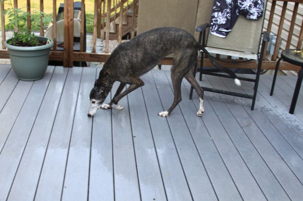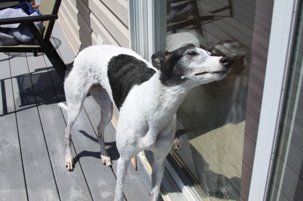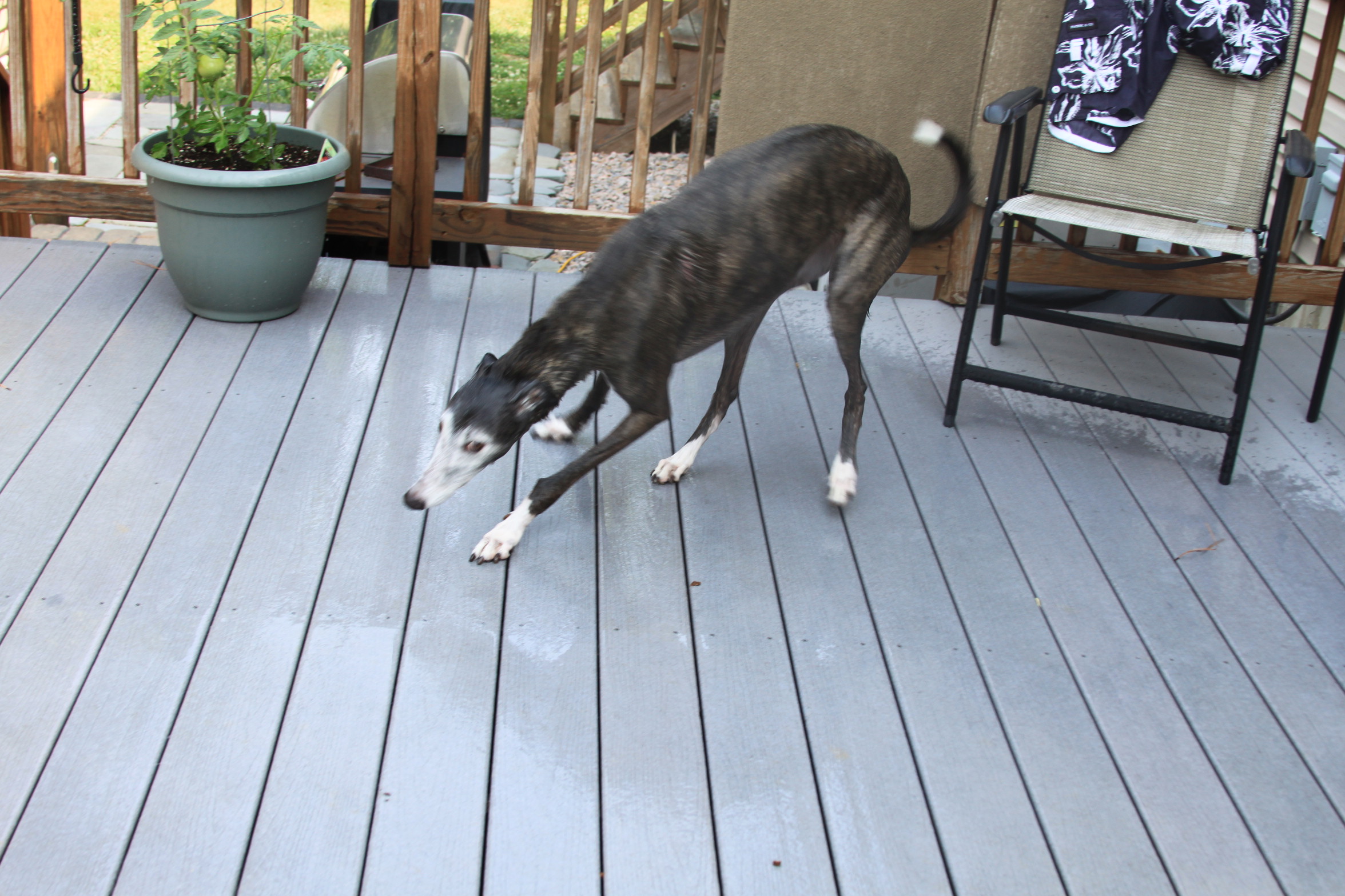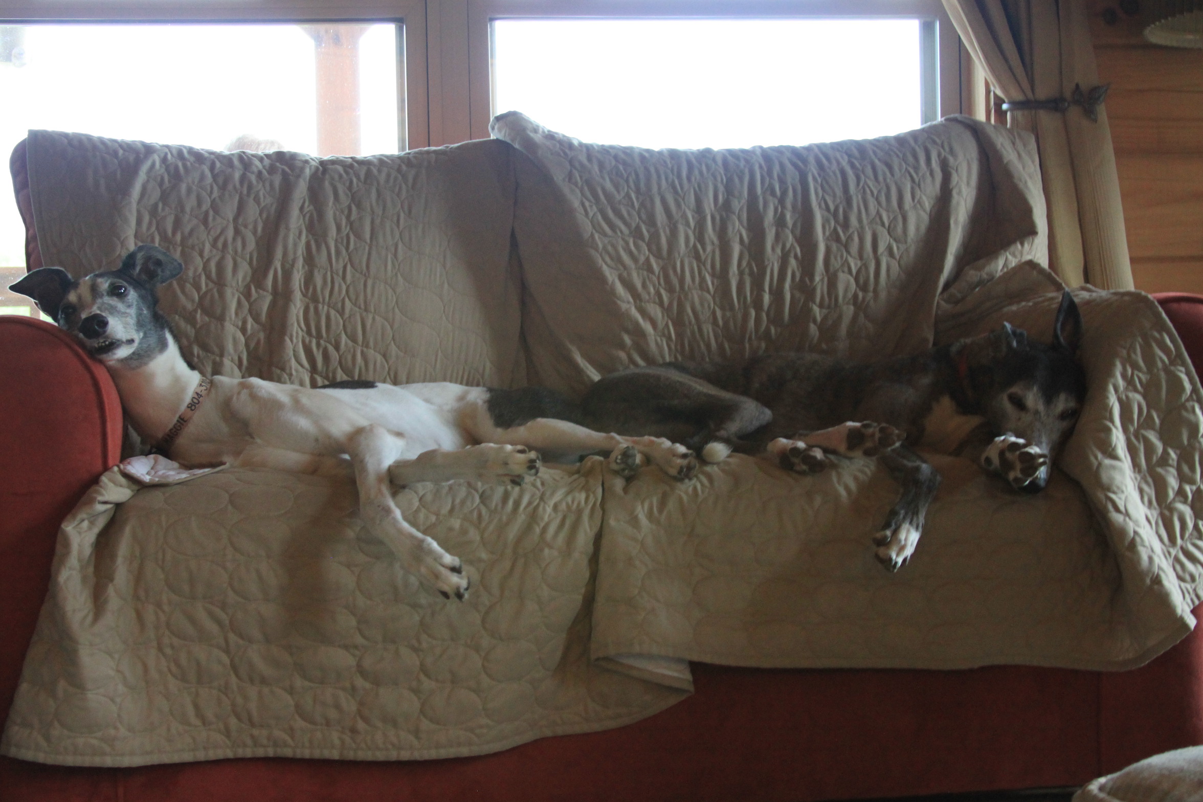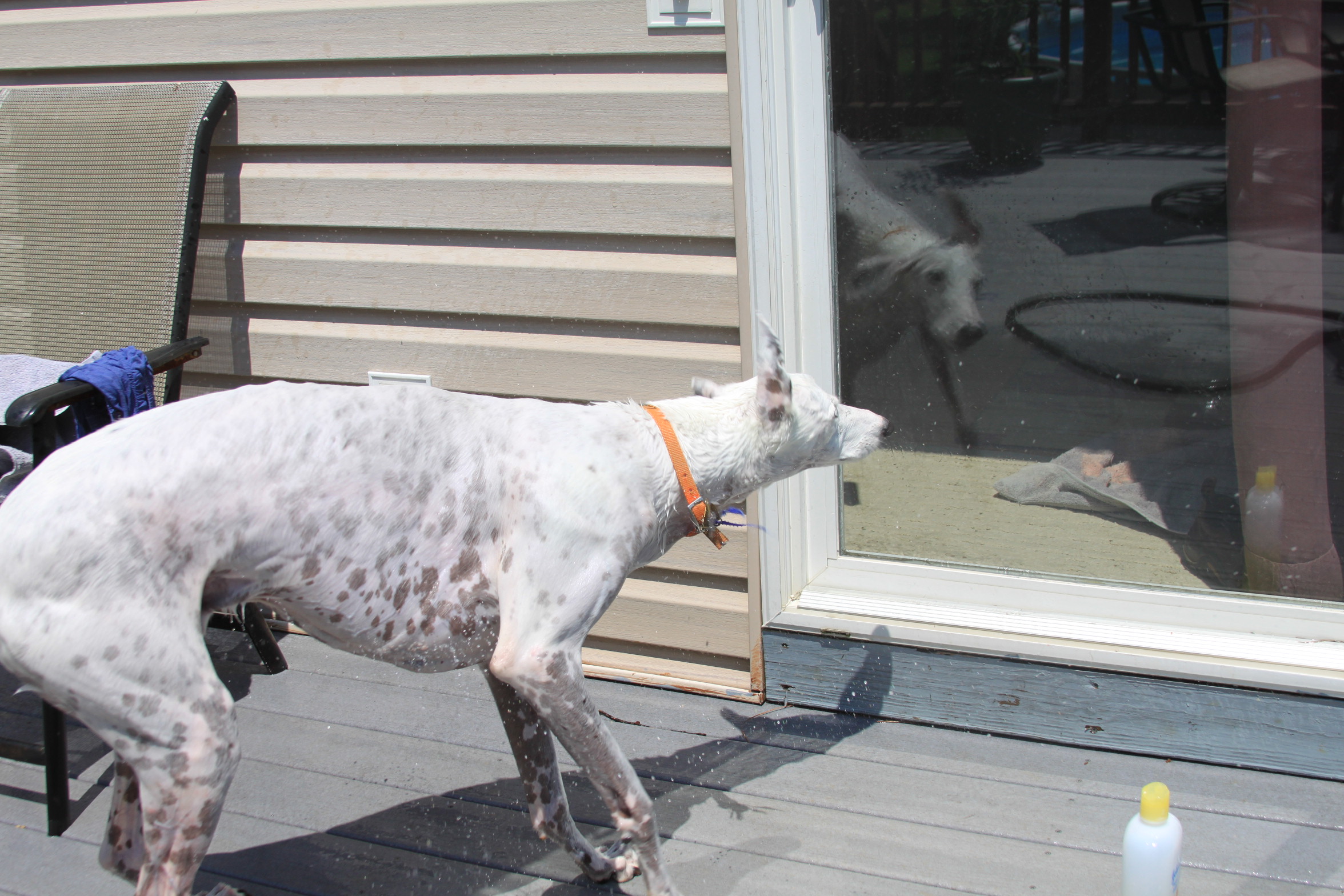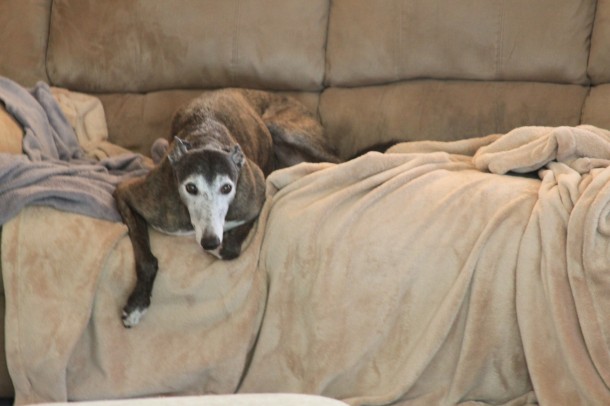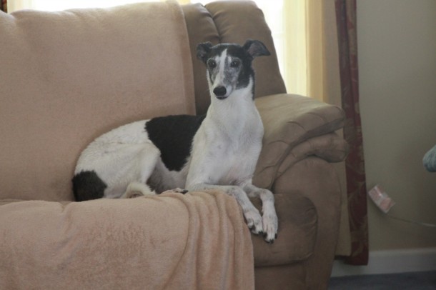 It is no secret in the Ridlon household that our sweet Maggie suffers from anxiety during thunderstorms. Any loud noise really sets her off. She pants, shakes, paces and looks for the tightest spot she can squeeze herself into. Her safety place is anywhere that surrounds her on all four sides, is dark and somewhat quiet. Usually my closet served as her safe place. Now dog experts will say, never comfort dogs when they are anxious as this somehow encourages or lets the dog know that this behaviour is acceptable. Makes sense. Just like you would not want to make a big deal out of leaving or coming home, as this causes anxiety for dog. It is also really hard as a compassionate human who thinks of her dogs as her children not to want to comfort them when they are anxious and upset. I always did my best, but there were times when I would just sit in the closet with her and hold her until the storm passed. In some instances this meant me sleeping on the floor of the closet with her through the night. If you don’t know or haven’t guessed yet, there is pretty much nothing in the world I would not do for my fur kids. They are certainly worth it!! For the past four years we have used a homeopathic drop to try to sooth her anxiety. It works well with the exception of having to give it to her 30 minutes to an hour prior to the storm, which was not always possible. I did not really want to drug her up so the homeopathic drops were a great solution. They are all natural and safe. I knew she would still act like herself, only calmer during the storm. Recently we had been debating about what we could do to help her. There had to be other dogs going through this and there had to be a solution. Before I could begin my research, I saw a post by a friend on Facebook about Thundershirts. I had honestly never heard of them. Before adopting Maggie, I had never experienced anxiety over storms with a dog before, so it was never something I had to worry or think about. So I looked at the website (www.thundershirt.com) and read about how the shirt works. The shirt was less than $40 and I figured it was worth a shot. It arrived while we were on vacation and lucky for us we got to try it out several times the week we returned from vacation. It took about 5 minutes, but we saw a huge difference in Maggie. She no longer looked for or sought her safe place. No more panting, shaking or pacing. She was actually laying on the couch quiet relaxed.