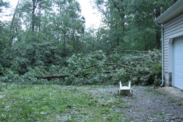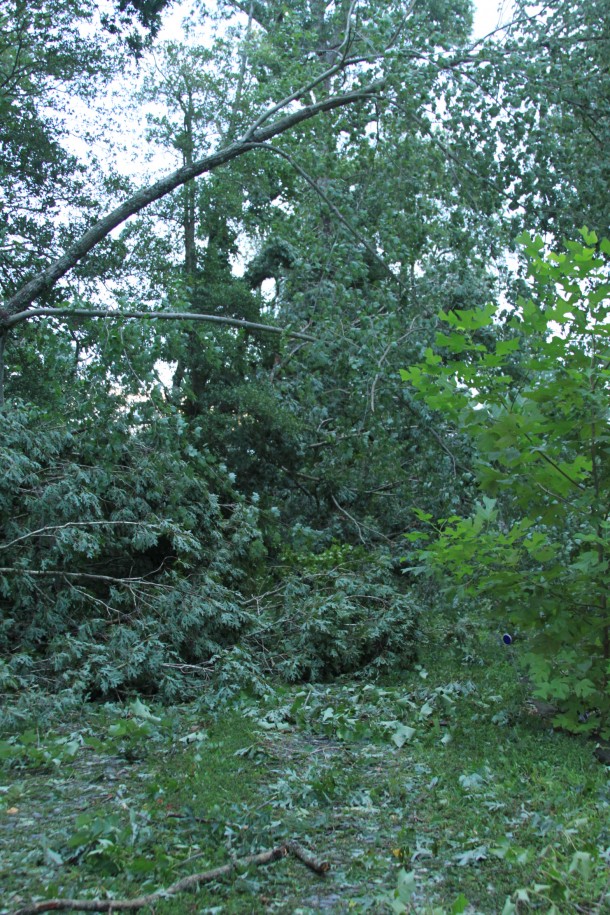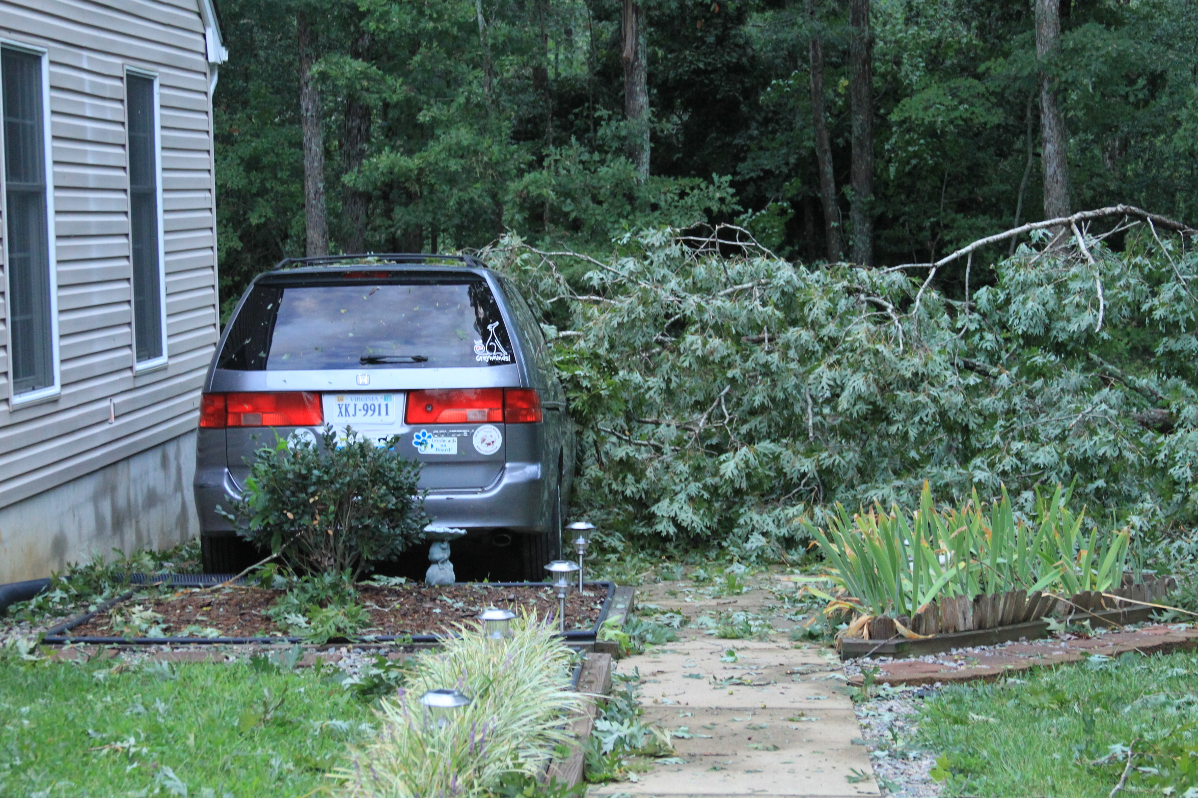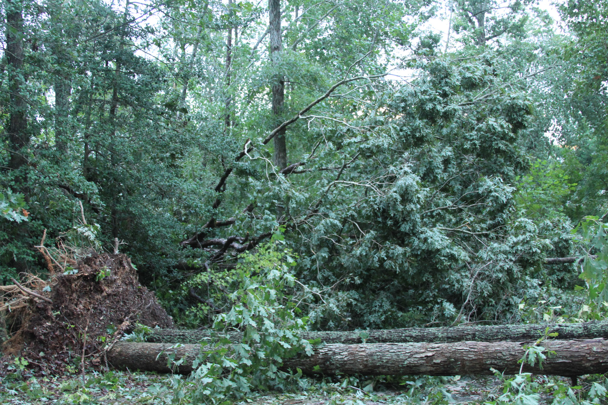We now have 2 Oaks and 1 Maple that will need to be removed. We hate to do it but these trees are now leaning towards the house and the root/support structure has been compromised because of the storm. They will be taken care of this week.