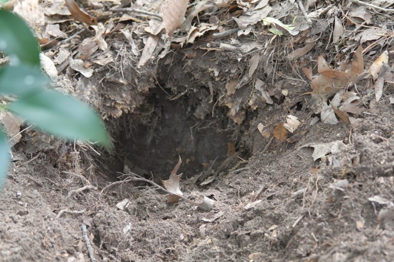 Another is removing all the holly trees along the back side of the house. We have successfully removed two. They took an hour each to dig out of the ground. Just 8 more to go. We are going to finish this project hopefully by fall. I visualize a patio from the deck all the way along side the back of the house ending at the master bath window. There is a reason why we will be stopping at the master bath window, but will share that later, when we get to that point. 😉 We learned a lot from building our last patio. We know what not to do now. I want something that will be maintenance free. 🙂