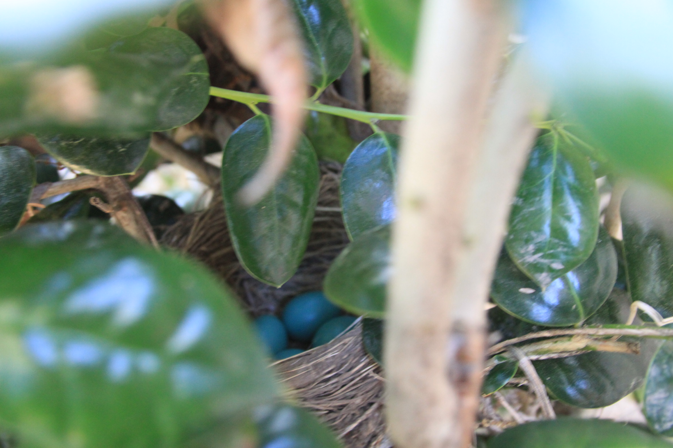 This nest is in the holly next to our a/c unit. I can see it from our dinning room window. I hope I am home when they start to hatch and wish I had a video camera that I could set up.
