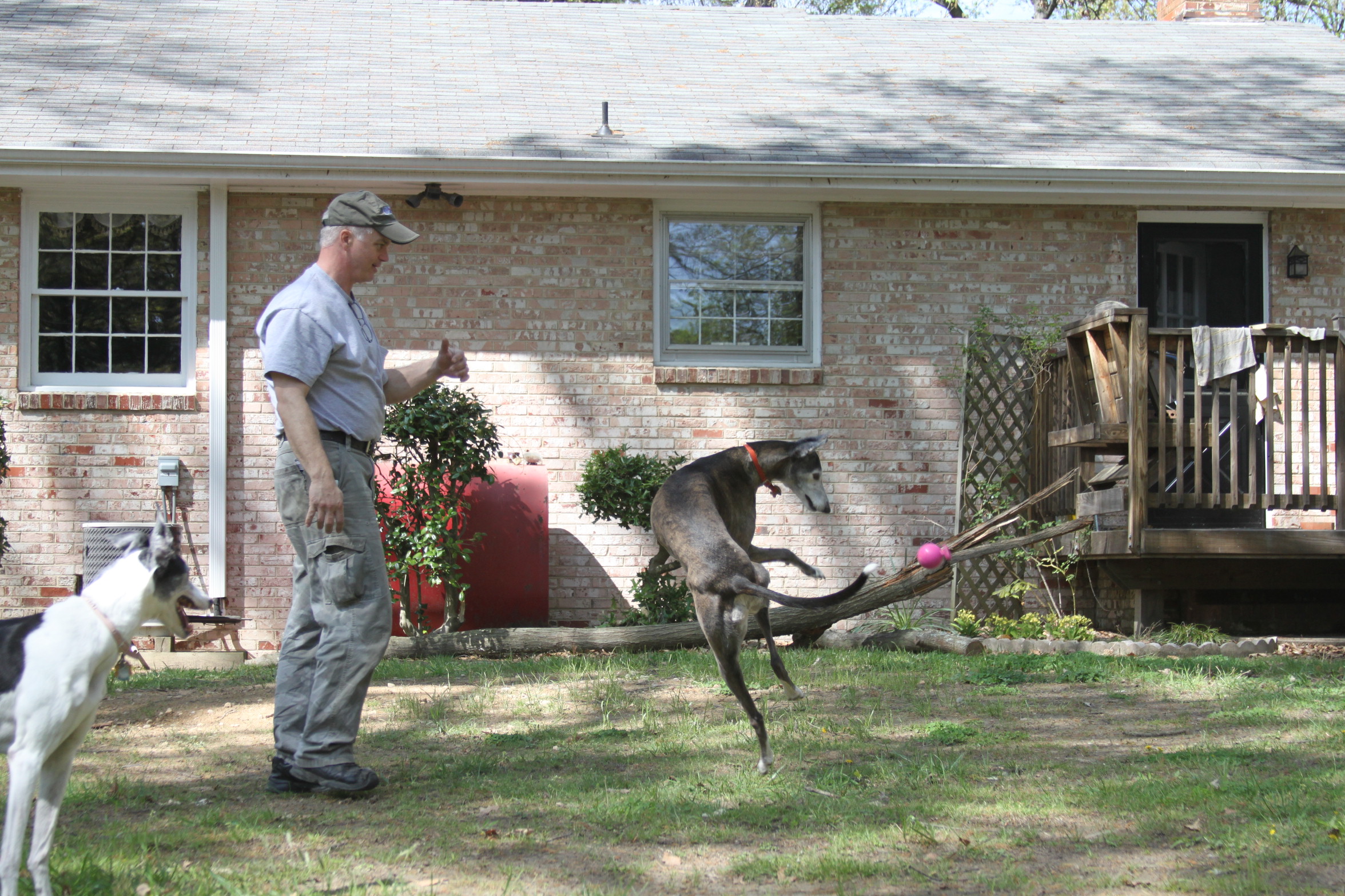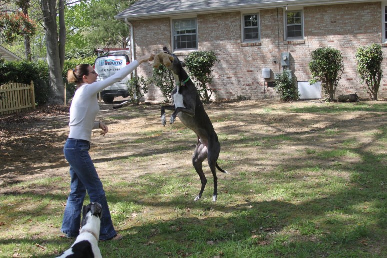 After Booyah took Mr. Bear on a tour of the yard, we played catch and tug-of-war.