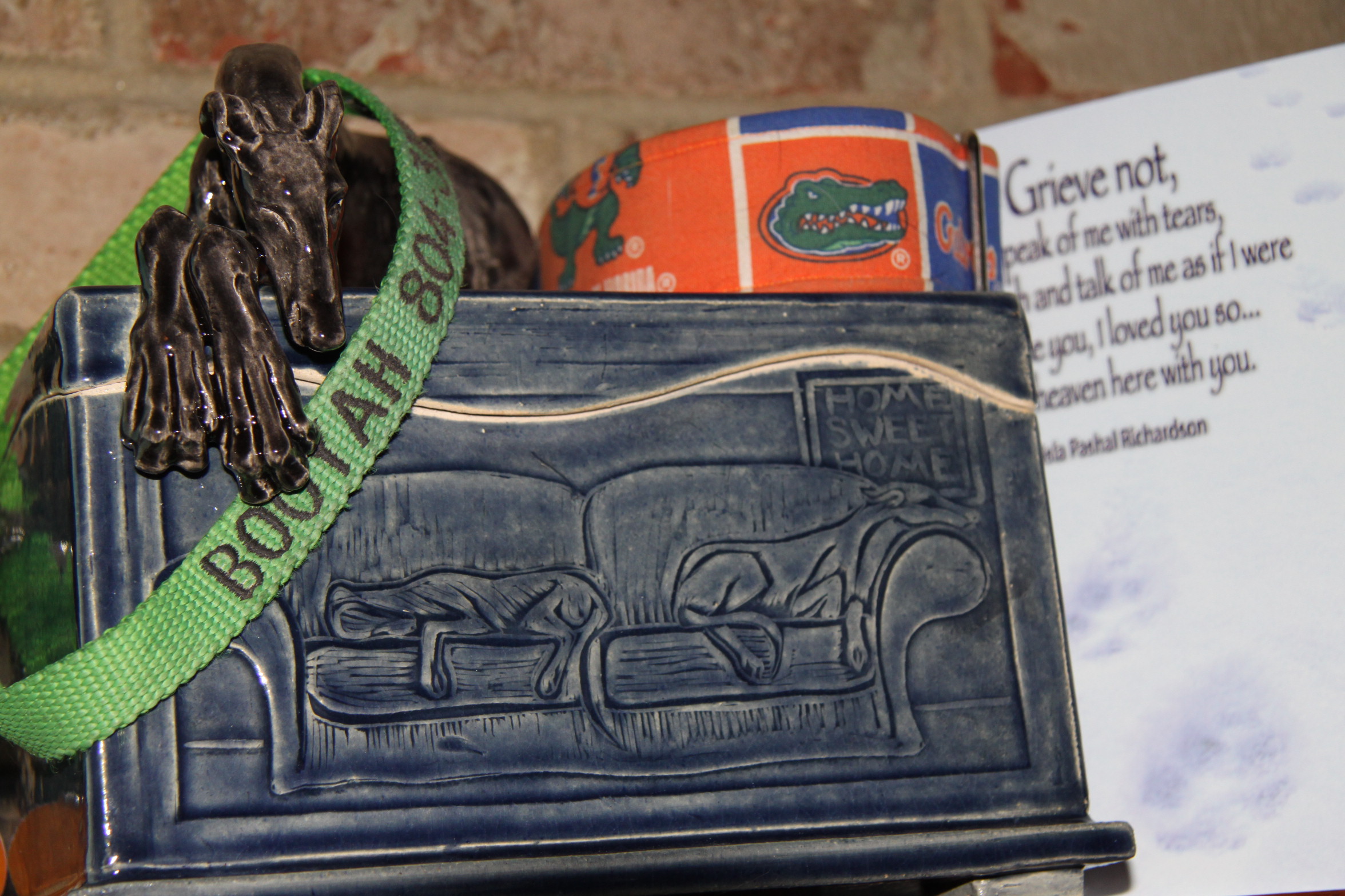 The hound sculpted on this box reminds me a lot of Booyah. It is the perfect way to honor him.