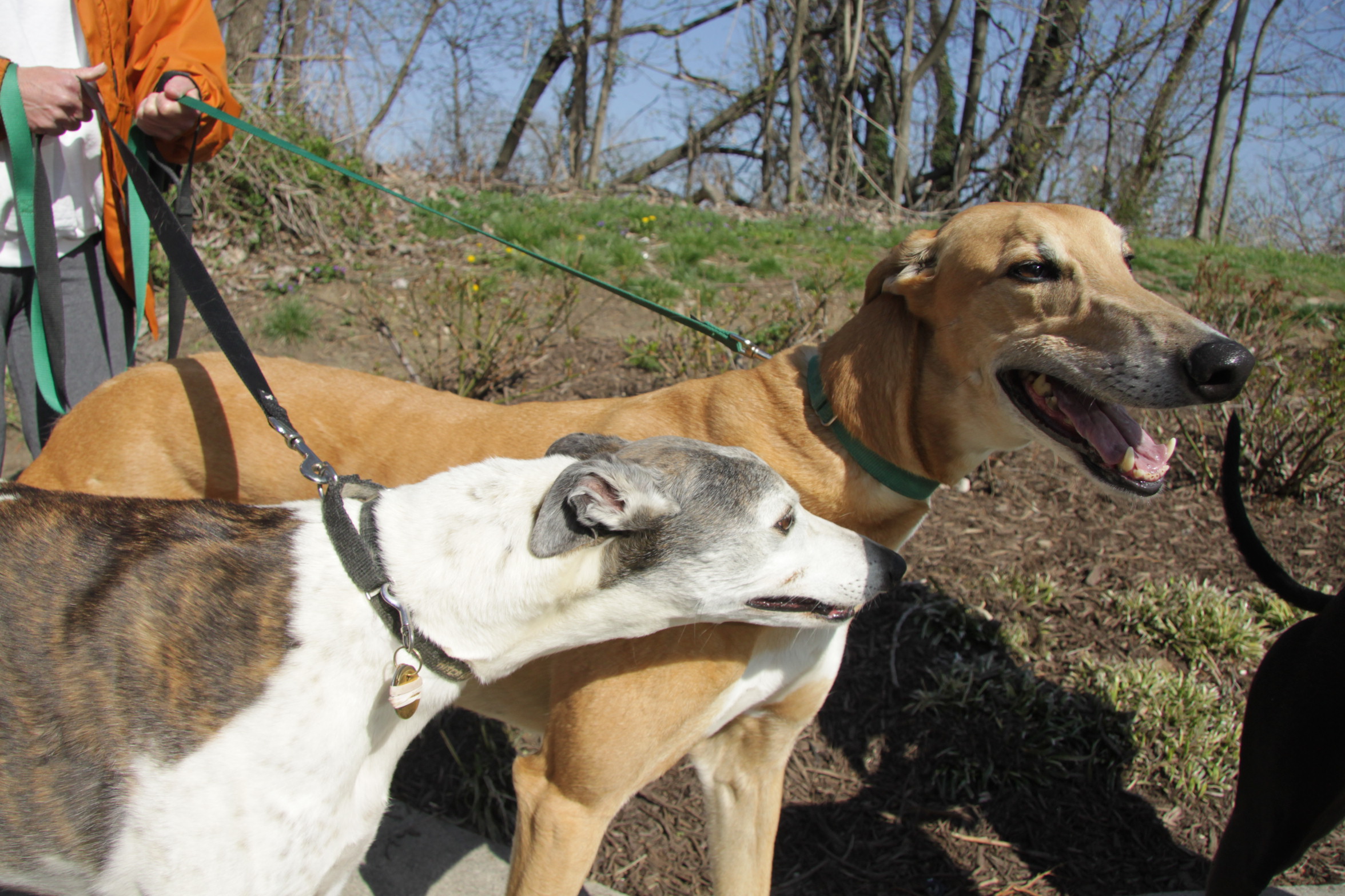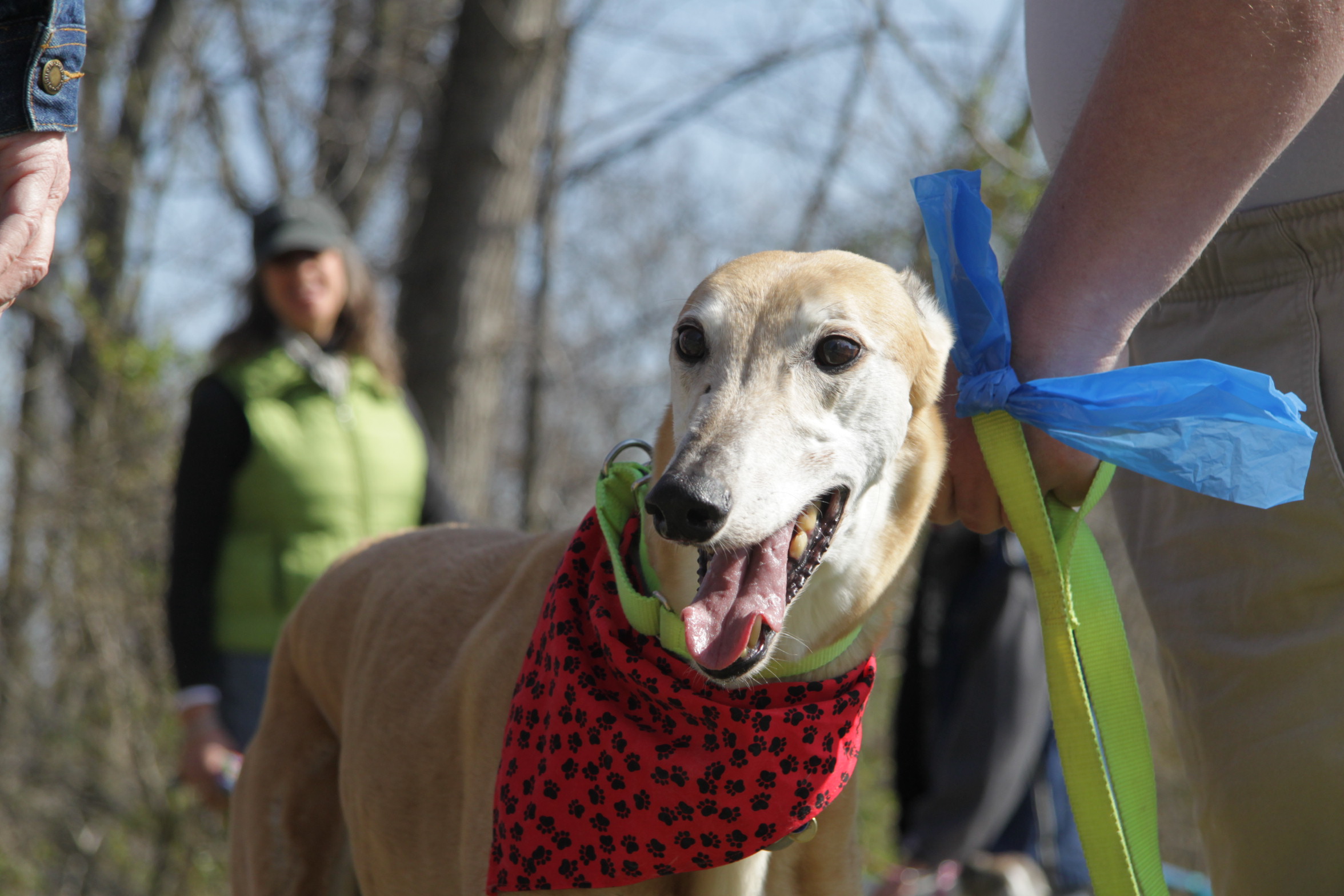 Cueball loves an adventure and was ready to walk and visit with his fellow greyhound friends.