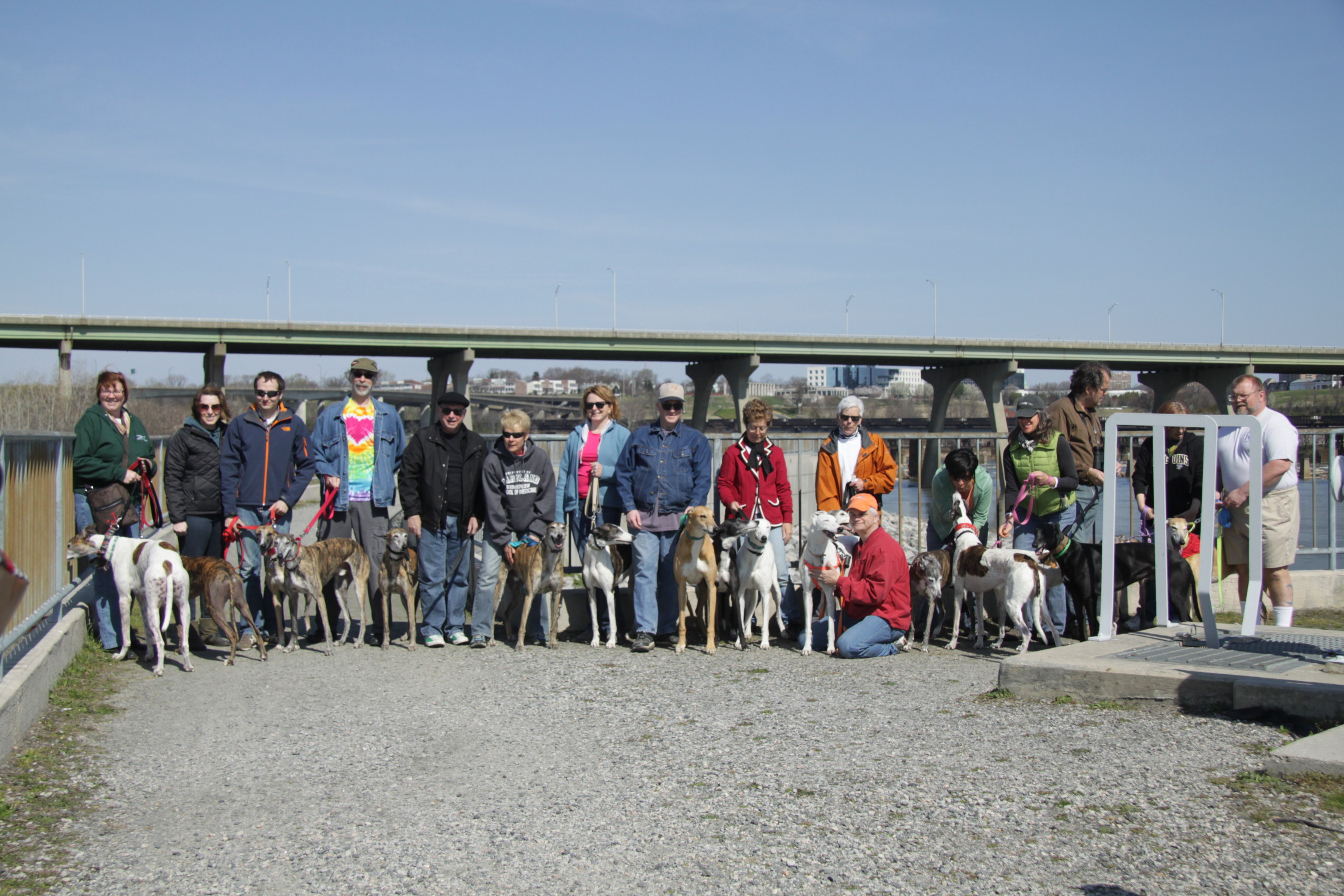 Spring has officially sprung in VA.  We couldn’t be happier!  Love this time of year! 🙂 Last weekend, we took a walk with a group of greyhounds along Richmond’s Flood wall; We only took Cueball with us. Maggie at 12 1/2 doesn’t do so well on long walks and really prefers to be in her own element. She has separation anxiety, so we let Pippi stay home with her; I got to play “sub” as our group photographer for the day, as our usual photographers were either unable to attend or enthralled in the nature we saw along our walk. 🙂 It was good practice for me.