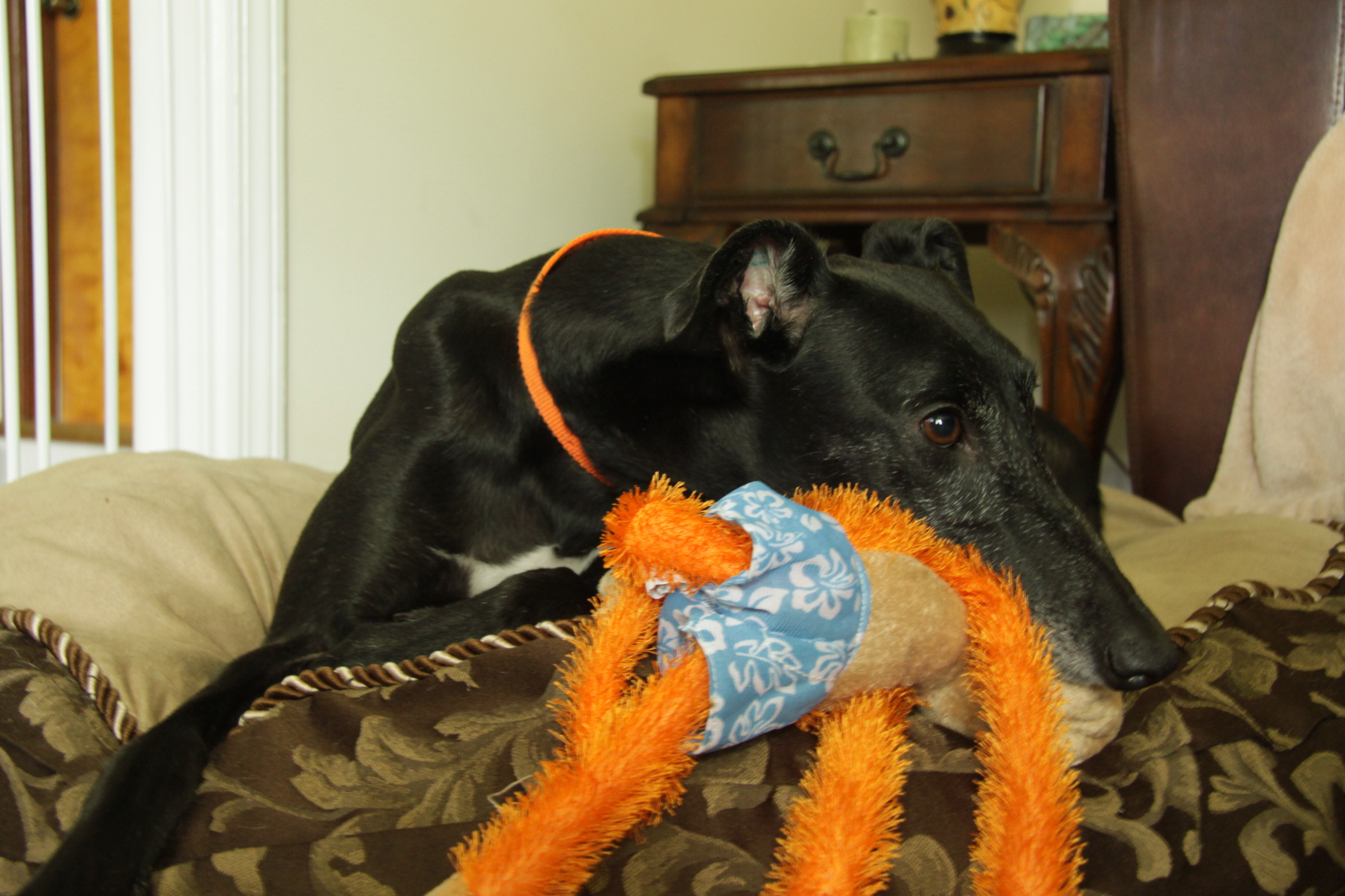 After two weeks of being here, she began sleeping with us on the bed. On my side, curled up next to me just like my Maggie Mae. She is another momma’s girl.