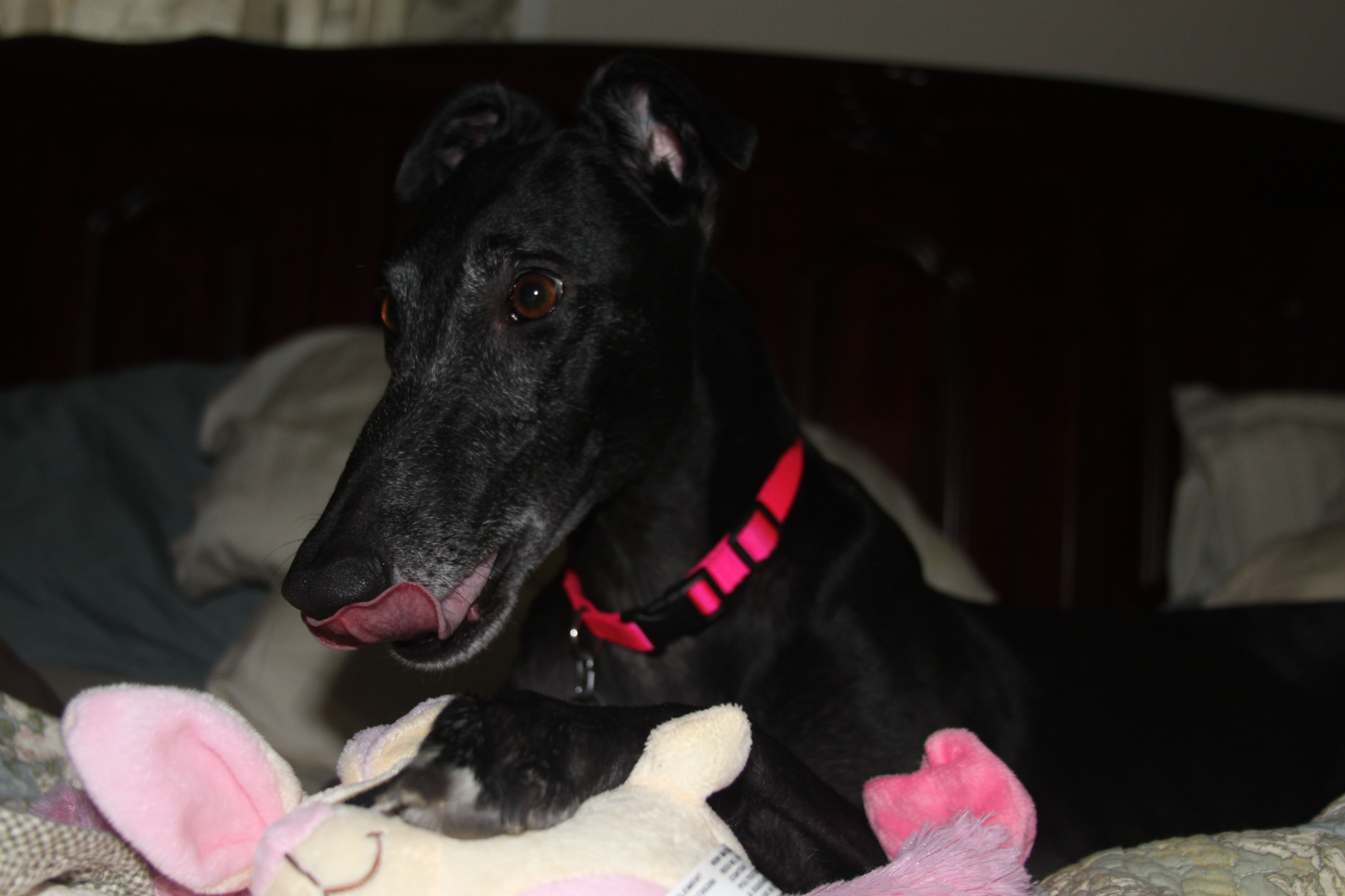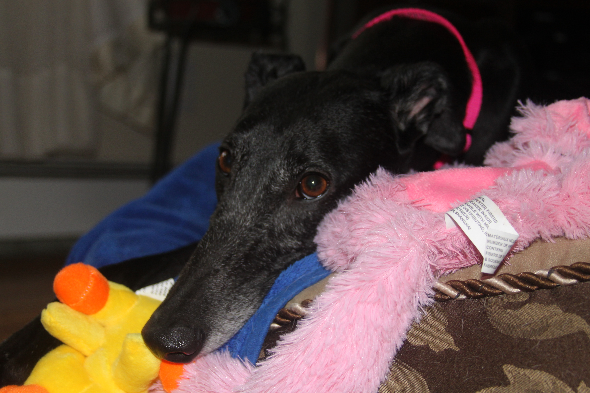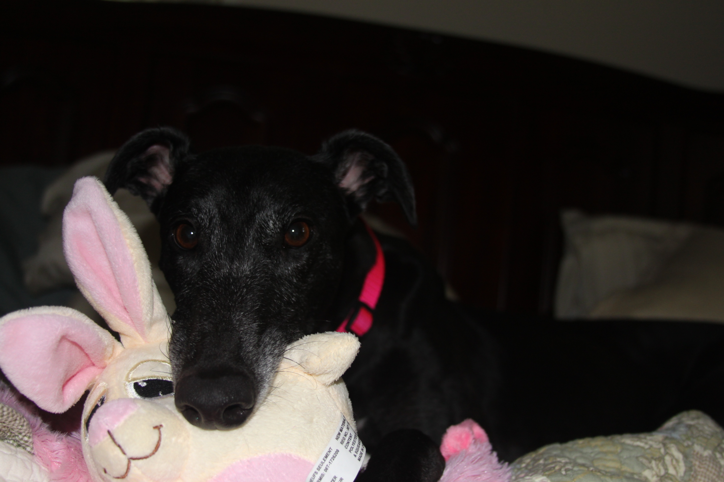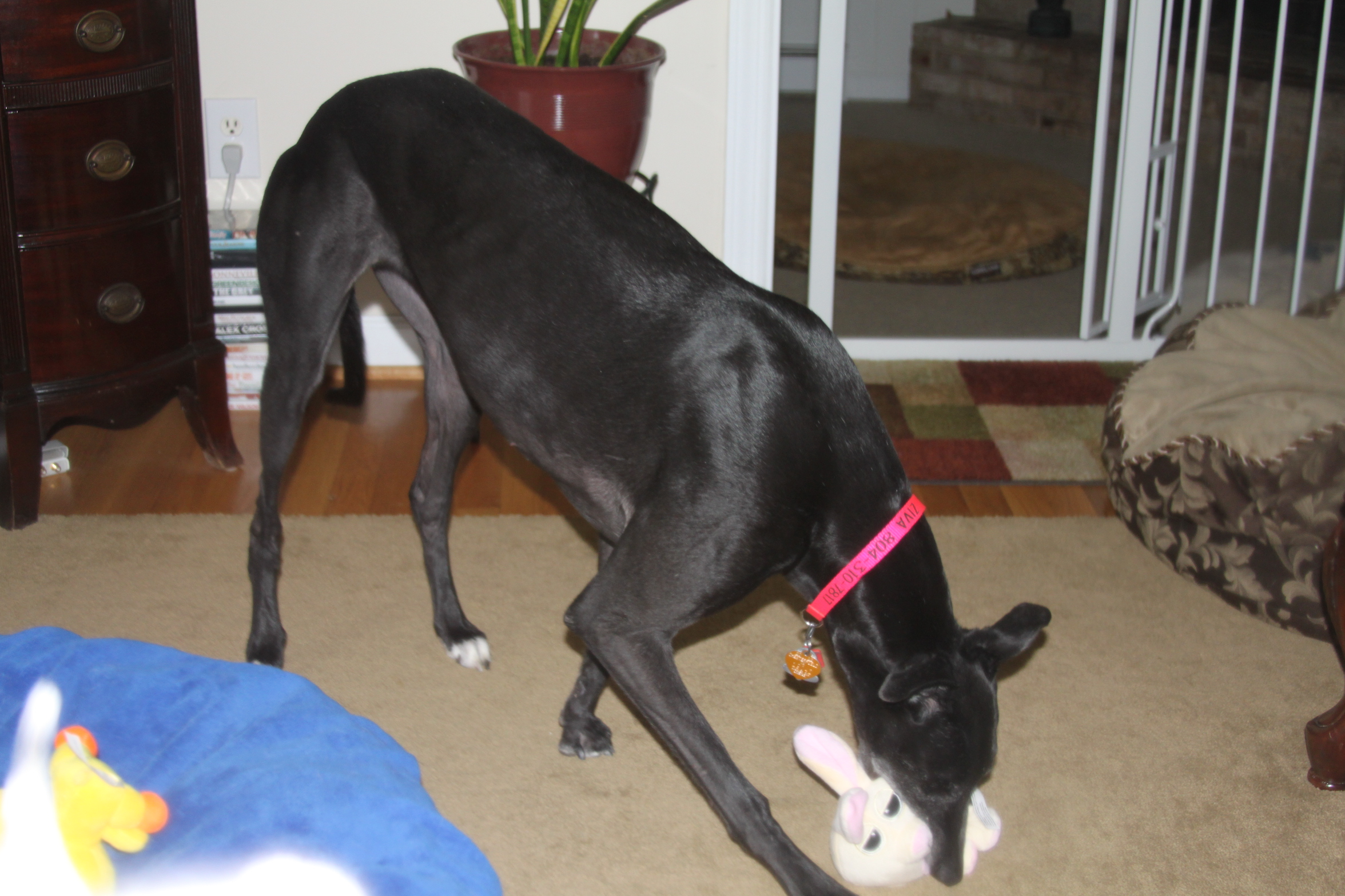 She turned four.  She is still very much in her “puppy” stage in life and has brought a lot of energy and fun to my aging pack.  Her favorite thing in the world is to play with toys.  She loves all squeaky toys, it doesn’t matter if they are small, large, long, short, hard or soft.  She plays with them every day in the morning and evenings.  She brings her favorite Teddy Bear to bed with her each night. So sweet.