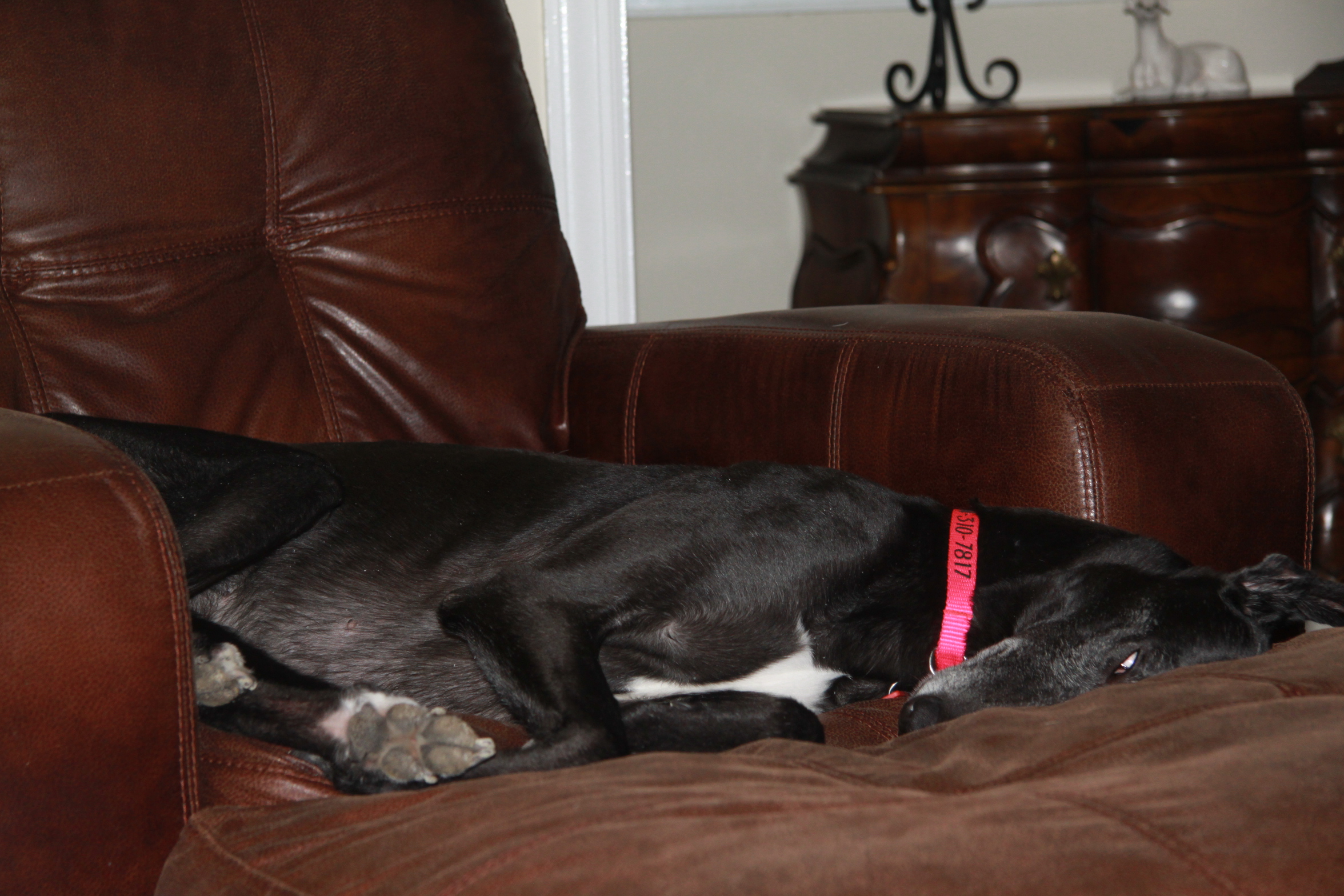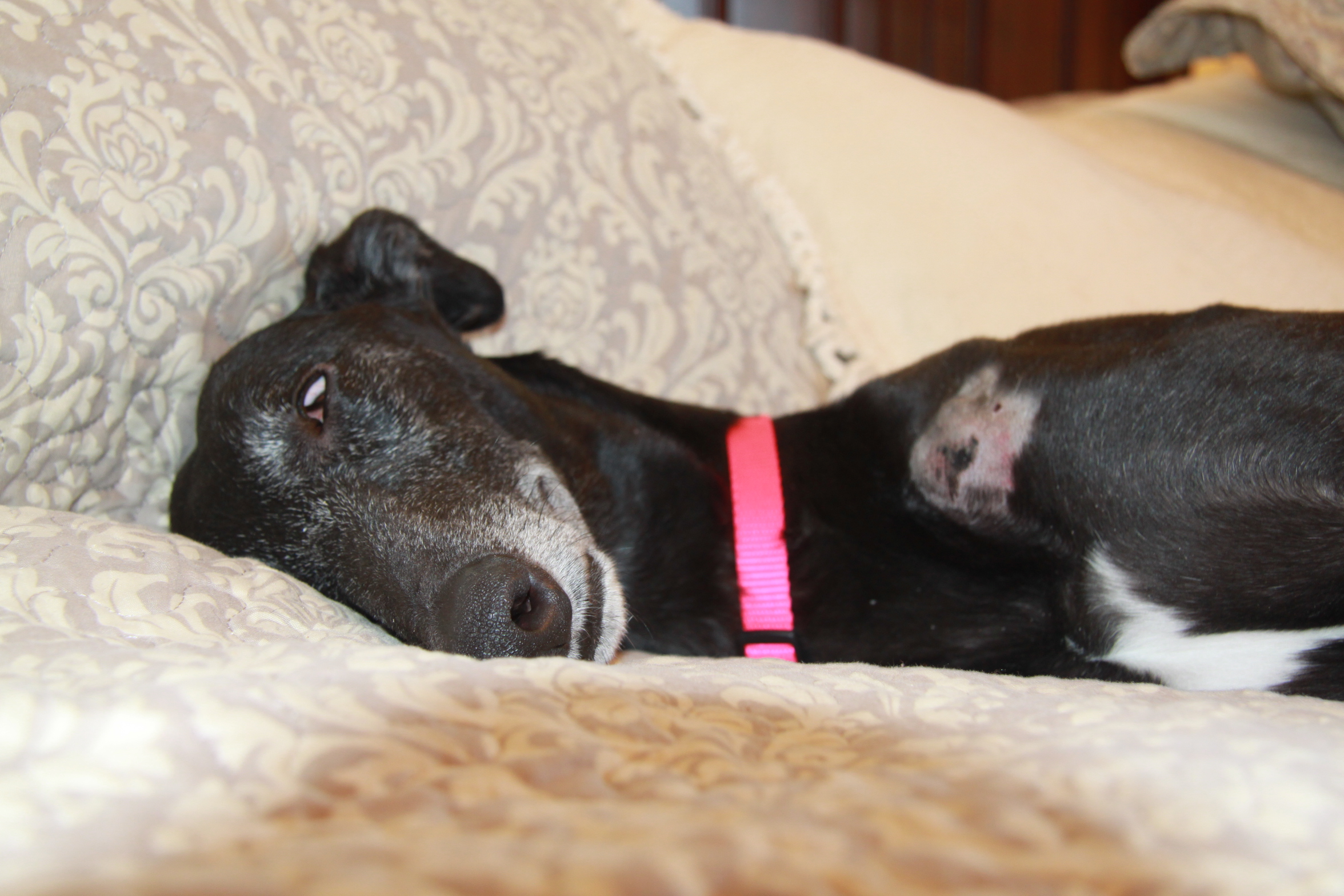 She had a restful night. We started off by letting her sleep on the couch in the living room. This is where she seemed most comfortable. I pulled up a double stacked dog bed and blanket beside the couch and slept there so that I could be close if she needed me. We were instructed to monitor her and rush her back to the ER vet if she had any difficulty breathing, had pale gums or was not acting like herself. They gave us very detailed discharge instructions and were only a phone call and short drive away should we need them. This was a huge comfort, as I was pretty nervous about her being home. I was very happy, don’t get me wrong, but nervous about getting through the next 16 hours. We had been told repeatedly that the first 48 hours were critical.