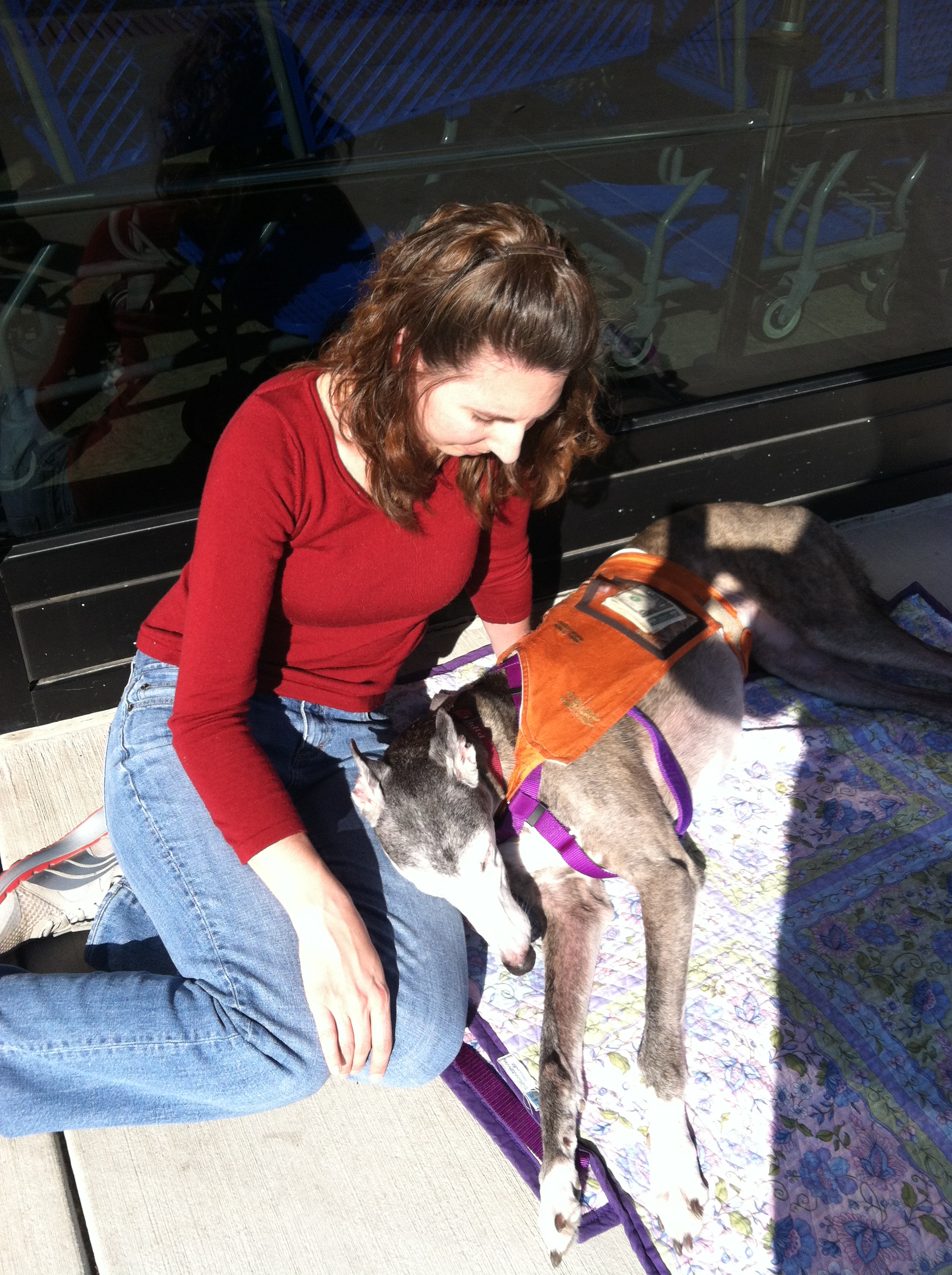 We are still dealing with Winter here in Virginia. One day it feels like Spring (in the 60’s and 70’s) and the next day we get snow. We had snow again this past Monday, who hoo, I am over it. We are expecting another winter storm on Tuesday. Saturday was a beautiful day. Warm enough for me to wear shorts and a T-shirt. Today I am back to wearing a sweater and jeans. It is a wonder we are not all sick from all the temp changes. Our monthly Greyhound Meet and Greet fell on Saturday and with the nice weather, we decided to bring all the hounds with us. We chatted with several folks who are interested in adoption. Fingers crossed that they apply to adopt. 🙂