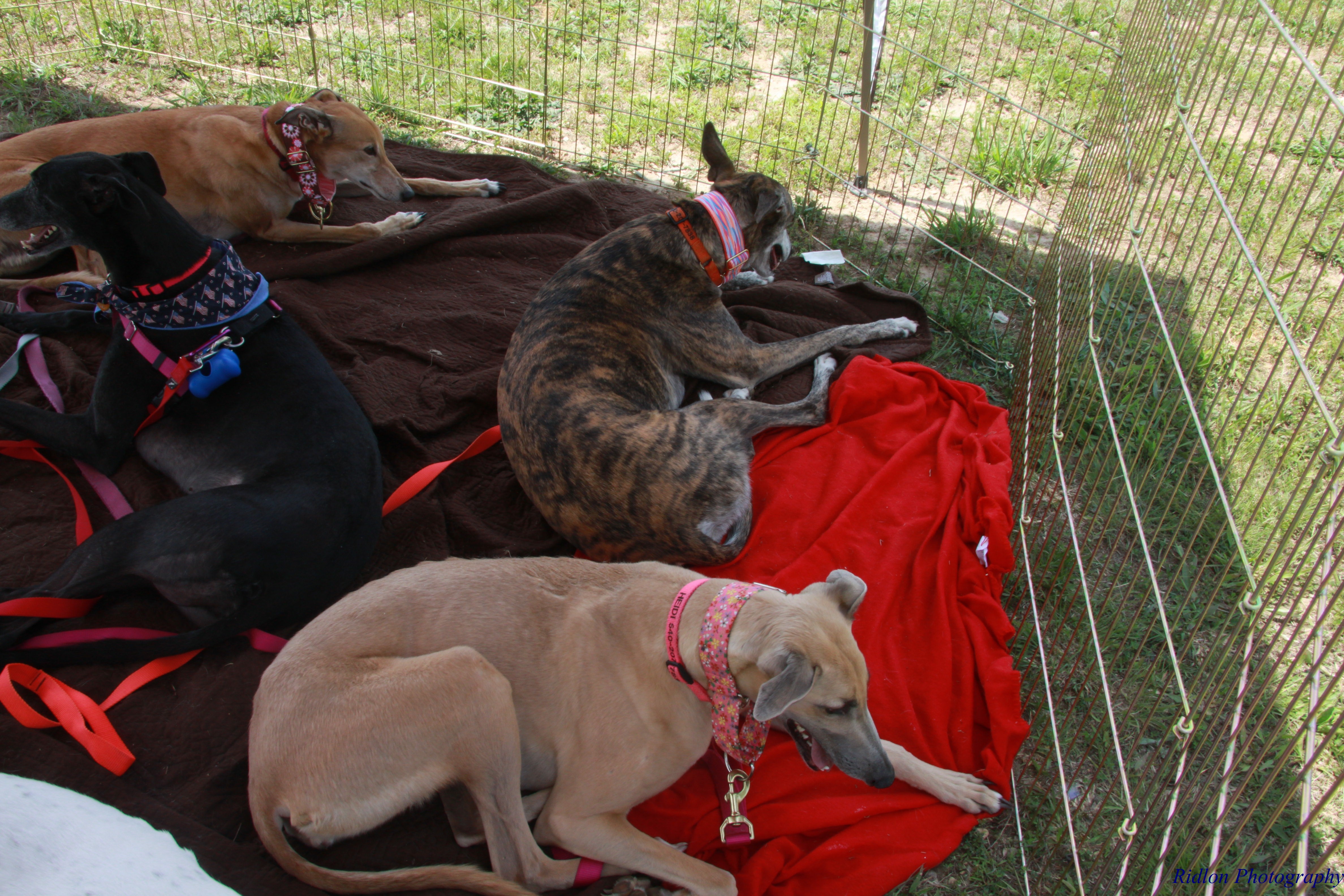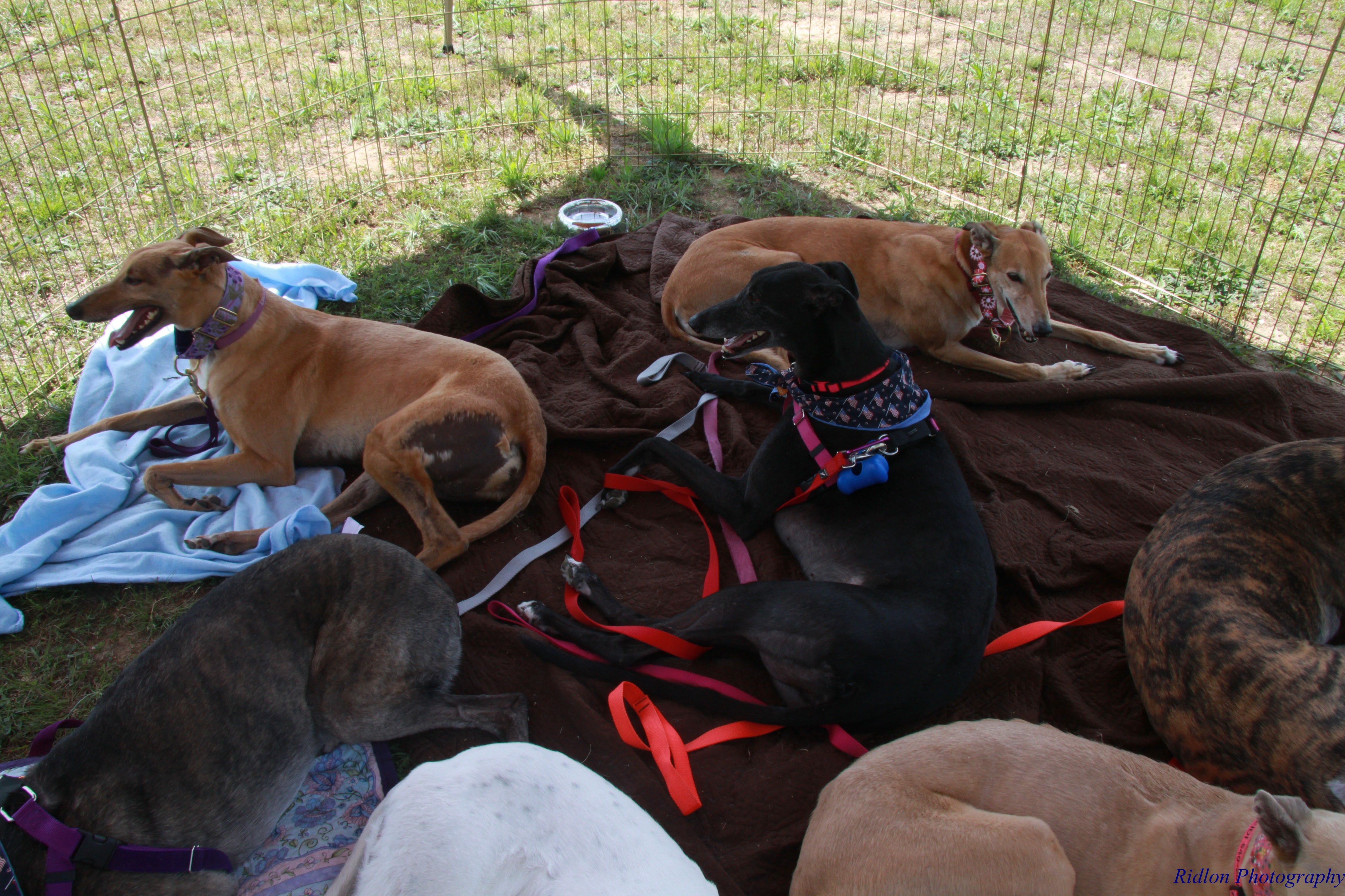 We set up the ex-pen and canopy for shade for the hounds.
